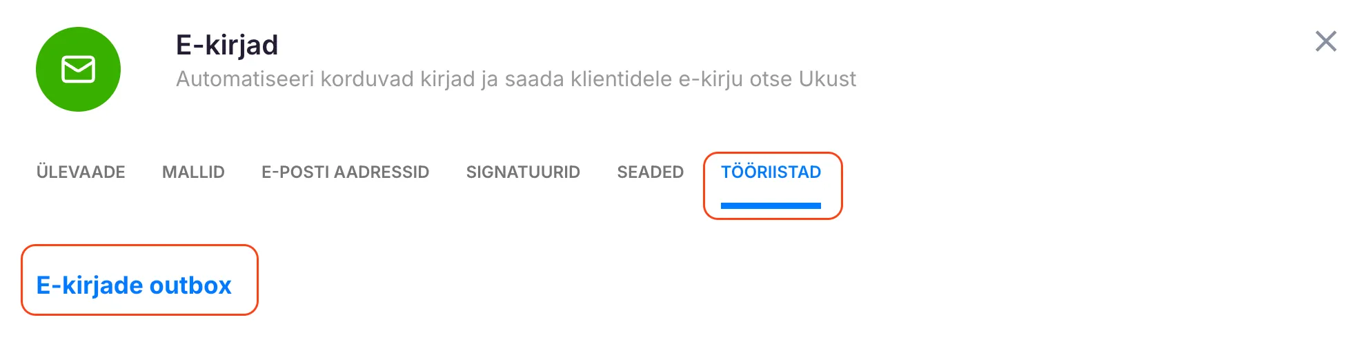 Mine Seaded > E-kirjad > vahekaart “Tööriistad” ning klõpsa “E-kirjade outbox”.