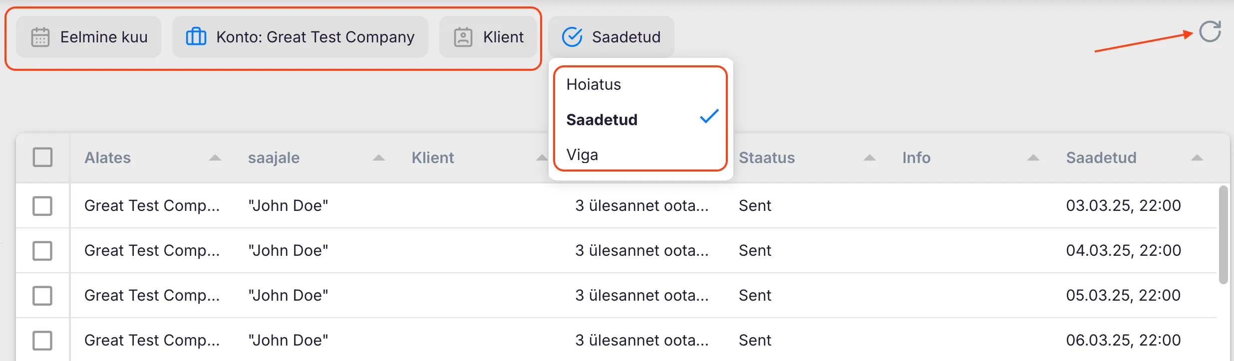 - Kui filtrid on valitud, klõpsa paremal asuvale värskendamise ikoonile.