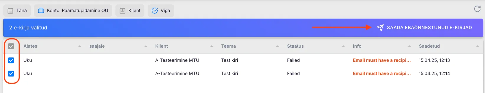 Ebaõnnestunud e-kirju saab uuesti saata kahel viisil: