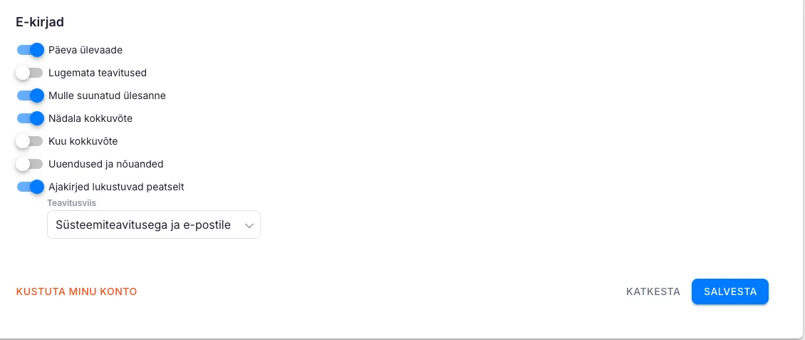 - Ajakirjete lukustamise teavitus – teavitus, kui ajakirjed lukustatakse (sõltuvalt seadetest saadetakse iganädalaselt või igakuiselt). Võimalik valida, kas saada teavitusi Uku sees, e-posti teel või mõlemal viisil.