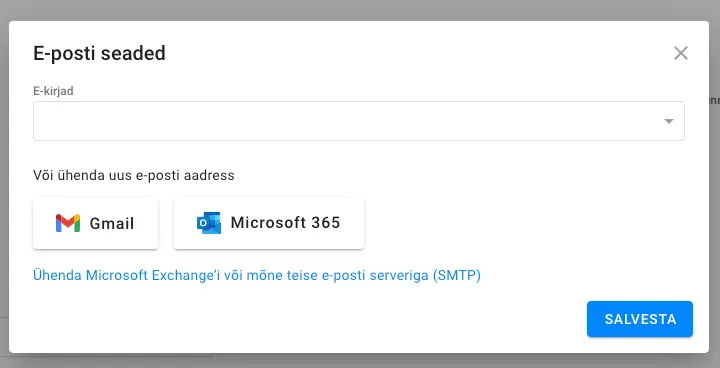 Kliendi kasutajad - Kui soovid eri klientidele erinevatelt aadressidelt kirju saata, on mõistlik seadistada kliendispetsiifilised meiliaadressid. Selleks toimi järgnevalt: