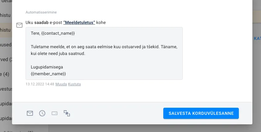 Section titled “Automatiseeri raamatupidaja e-kirjad”Lisa ülesannetele automaatne e-kirjade saatmine ja e-kirjade äpp hoolitseb selle eest, et kõik meeldetuletused ja infopäringud õigel ajal õigetele adressaatidele jõuavad.
