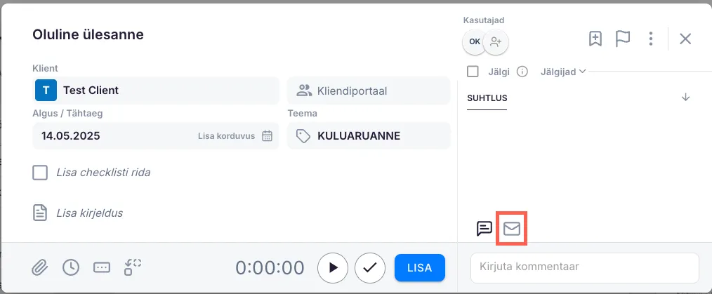 Section titled “Kirja saatmine ülesande seest”Kui oled ülesande sees, klõpsa paremal pool asuvale ümbrikuikoonile.