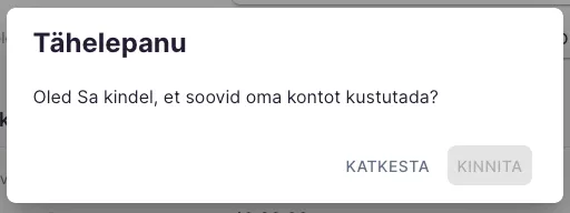Ilmub modal, mis küsib kustutamise soovi üle. Konto kustutamiseks vajuta “Kinnita”: