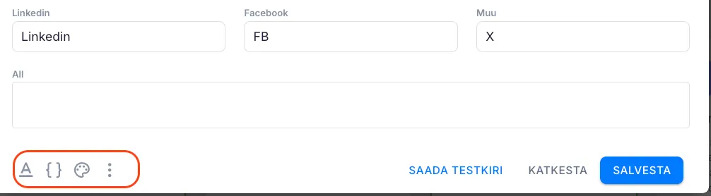 Vormindamise ikooni kõrvale klõpsates näed loetelu muutujatest, mida saad allkirjas kasutada.