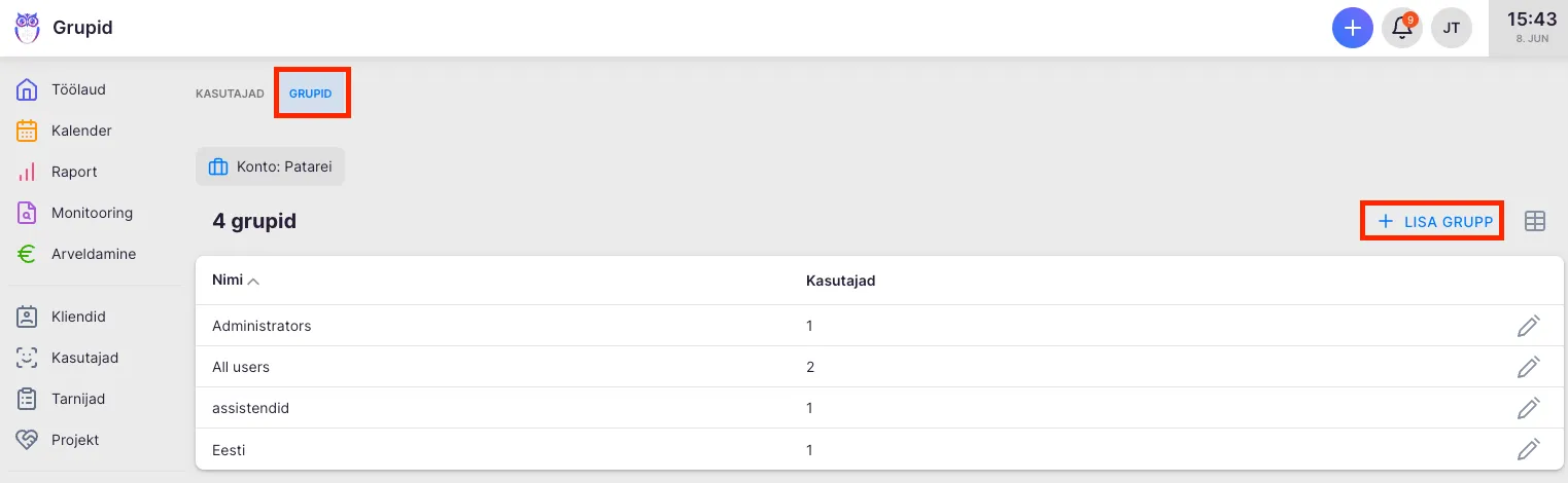 Section titled “Liigita raamatupidamisbüroo töötajad gruppidesse”Kuidas kasutajagruppe luua?