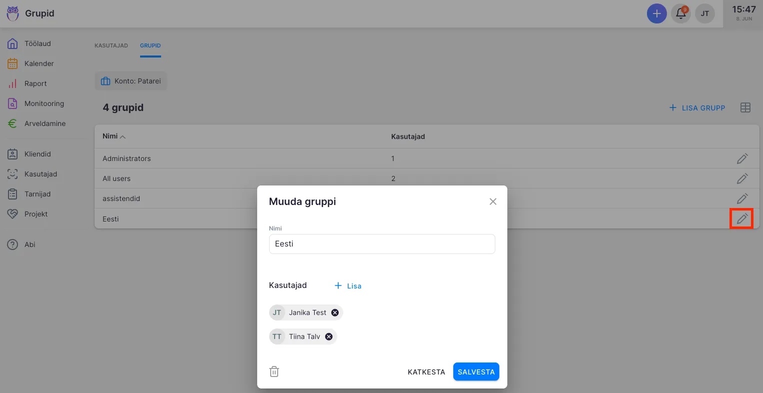 - Nimeta grupp ja lisa kasutajad