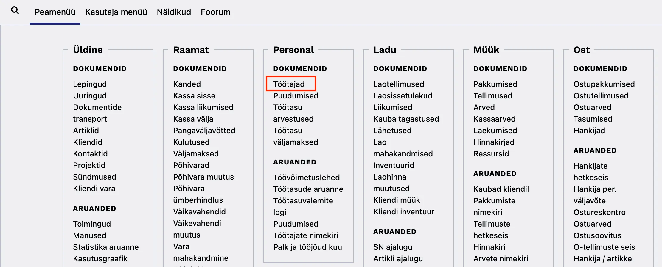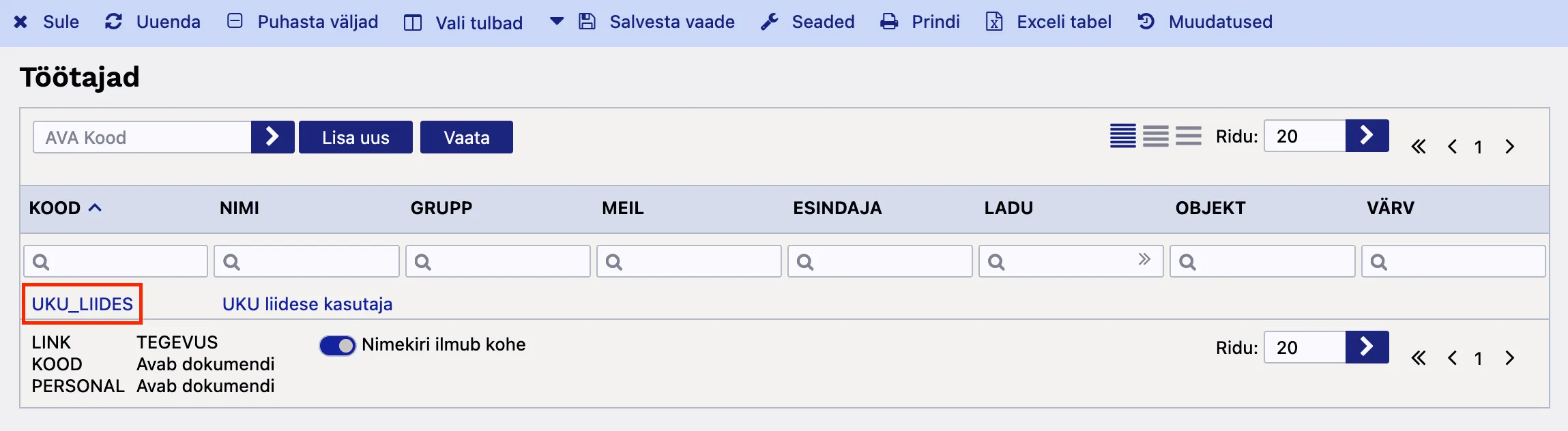Personal valikust ‘Töötajad’.