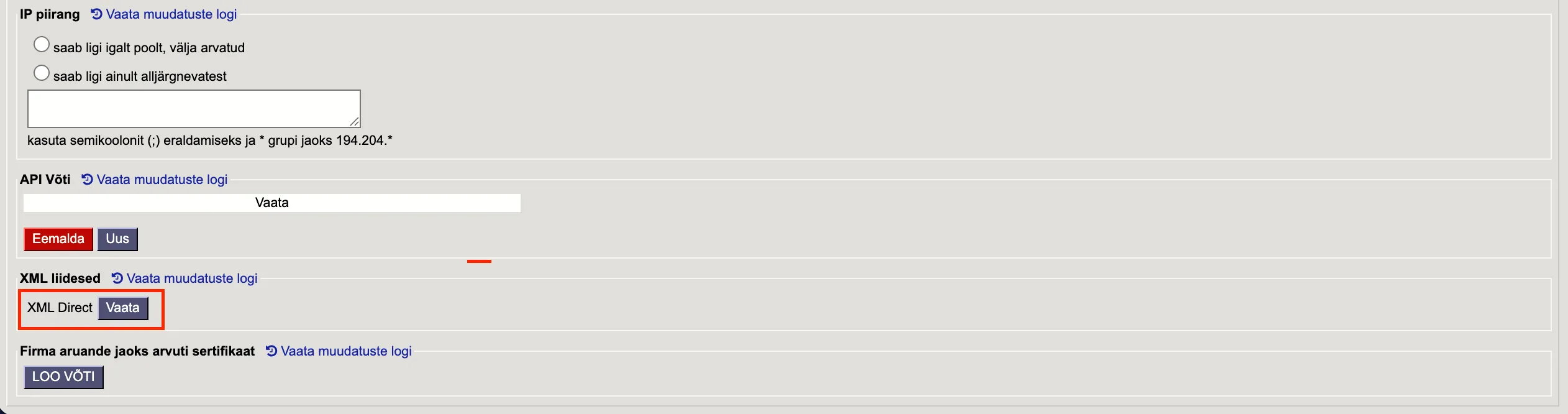 Kui need on aktiveeritud, siis leidke Directost XML Direct järgneva juhise kaudu