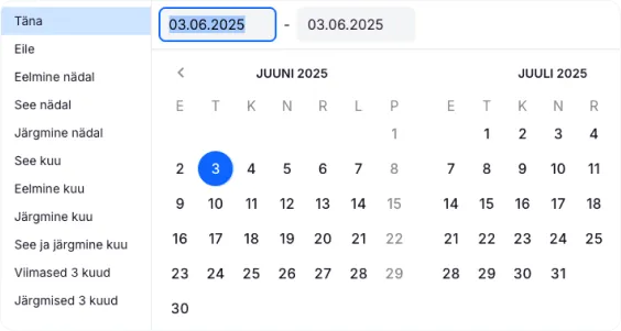 - Kuupäeva kiirvalikud – Mugavad kiirvalikud, mis töötavad nii töölaual, raportis kui kliendikaardil.